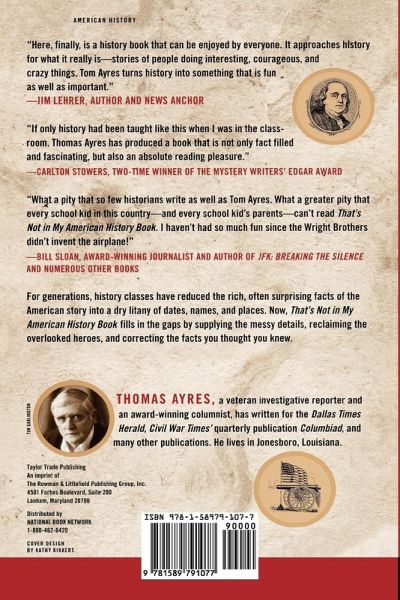 History classes reduce America's story into a dry litany of dates, names, and places. That's Not in My American History Book tackles the messy details, reclaims disregarded heroes, and sets the record straight. This book explains why July 4th isn't really Independence Day, reveals 19th century mudslinging that labels Andrew Jackson a "murderer," and even unveils the only vice president with a number-one pop hit. With insight, wit, and irreverence, Ayres uncovers our overlooked past.
