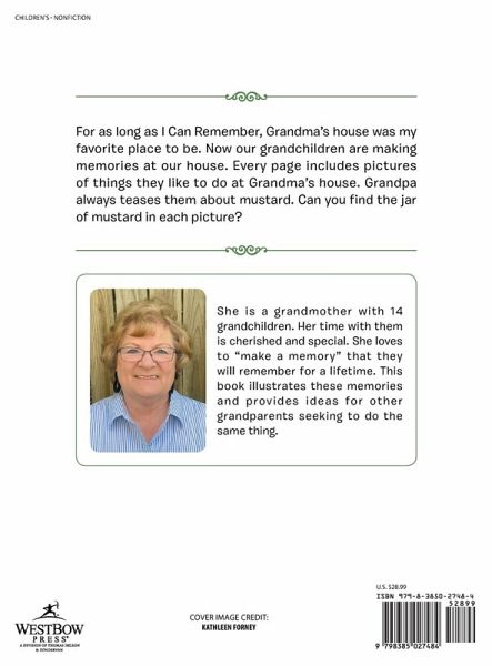 For as long as I Can Remember, Grandma's house was my favorite place to be. Now our grandchildren are making memories at our house. Every page includes pictures of things they like to do at Grandma's house. Grandpa always teases them about mustard. Can you fi nd the jar of mustard in each picture?