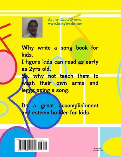 This is a song book that teaches toddlers how to wash up in the bath tub. It teaches the parts of the body with a song and then tells them to wash with soap, water and a towel with illustration. Its a mommy/daddy and me sing-a-long book.