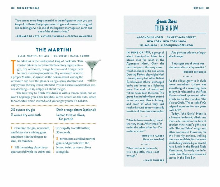 It’s a system, a tool kit, a recipe book. Beginning with one irresistible idea--a complete home bar of just 12 key bottles--here’s how to make more than 200 classic and unique mixed drinks, including sours, slings, toddies, and highballs, plus the perfect Martini, the perfect Manhattan, and the perfect Mint Julep. It’s a surprising guide--tequila didn’t make the cut, and neither did bourbon, but genever did. And it’s a literate guide--describing with great liveliness everything from the importance of vermouth and bitters (the “salt and pepper” of mixology) to the story of a punch bowl so big it was stirred by a boy in a rowboat.