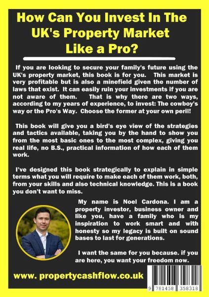 If you are looking for a book that gets you started or expands your knowledge of the existing tactics and strategies to invest in the UK property market this is it. This book is written from my several years of experience investing, using simple to advanced strategies, making mistakes and fixing them, learning from the pros to avoid pitfalls coming from ignoring the complex webs of regulations in the UK which has the most intrusive planning system in the world. My aim with this book is to give you a bird's eye view of the different paths available to you making specific notes of what you need to take into account to turn this into a cash-generating business, because believe it or not, over 70% of landlords in the UK have become so by accident not purposefully learning to make the maximum money from the assets they have inherited and believe me, there is a big difference between those who manage to see to maximise their profit and those who just see a buy to let investment in every building that is put in front of them. In this book, I also attempt to encourage you to invest like a pro, following regulations and avoiding becoming one of the thousands of cowboy investors out there who have no regard for tenants, regulations or even their assets themselves. Such cowboys are building a glass castle likely to break into pieces with the slightest touch. After you've read the book, come and join me on propertycashflow.co.uk, so I can take you by the hand and help you get to the other side with a powerful asset in one hand generating as much cashflow as possible and the free time, on the other hand, to use in any way you like. See you soon. Noel