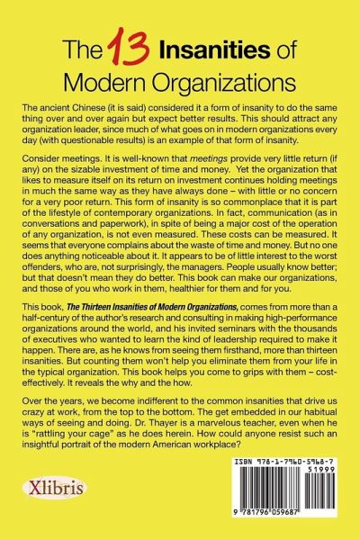 Some of this book's readers will (astutely) see some parallels between this book and Thayer's How Executives Fail. They both identify the kinds of weaknesses in an organization or its managers that will inevitably lead to its demise (or its mediocrity, which amounts to the same thing). That is inevitable. In his pioneering work of helping CEOs to transform their organizations for high-performance, Dr. Thayer has been developing a successful conceptual framework for understanding organization-making and life-making in general for 60+ years. His mantra for all of those years in his many books, his many consulting assignments here and abroad, and his many, many seminars with CEOs and other top executives, from Australia to Finland, from Greece to China, from Mexico to Canada, and major points in between. Although he started his career as a consultant to the leaders of the Fortune 500, he prefers working with small to medium-sized organizations where, as he says, "it is easier to see the impact being made." He was more recently awarded a Lifetime Achievement Award from Marquis Who's Who, to add to his many awards over the years of his illustrious career as a consultant, author, and mentor. To date, he has published twenty-six books on his experiences and his research, and he is known worldwide for his perspective on the human condition, both at work and at home.
