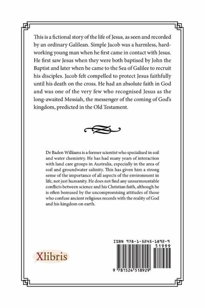 This is a fictional story of the life of Jesus, as seen and recorded by an ordinary Galilean. Simple Jacob was a harmless, hard-working young man when he first came in contact with Jesus. He first saw Jesus when they were both baptised by John the Baptist and later when he came to the Sea of Galilee to recruit his disciples. Jacob felt compelled to protect Jesus faithfully until his death on the cross. He had an absolute faith in God and was one of the very few who recognised Jesus as the long-awaited Messiah, the messenger of the coming of God's kingdom, predicted in the Old Testament.