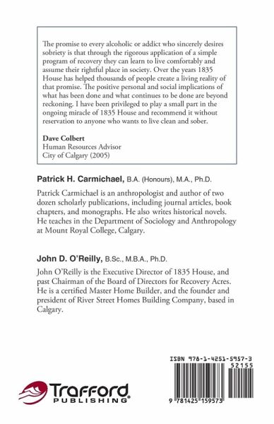 1835 House is a men's alcohol and drug recovery centre in Calgary, Alberta, Canada, serving resident and day-program clients. The 1835 Recovery Model results from 36 years of front-line experience treating men with alcohol and drug addictions. It represents the collective wisdom and commonsense of accredited counsellors who are themselves addiction survivors. Because it was developed by men in recovery for men in recovery, the model espouses a compassionate but no-nonsense approach to treatment. The recovery philosophy is that of Alcoholics Anonymous, and therapy is grounded in the AA 12-Step Program. Other essential features of the model include exclusive focus on maintaining physical and emotional sobriety (as distinct from harm reduction models that treat a spectrum of behaviors concurrently), prompt return to employment, peer mentoring, and an active alumni association. In a follow-up survey of 136 former clients who completed a program at 1835 House, 82% reported continuous abstinence for six months after discharge, 74% for twelve months, and 73% for two years or more. Detailed statistics on client demographics and recovery outcomes are presented in the appendices. The pragmatic concerns of staffing and funding 1835 House are also addressed, and fund raising strategies that have failed and worked are discussed. This book offers a complete guide to the recovery approach, organization, and funding of a highly successful residential treatment centre. While the model was developed for a men's facility, it is equally applicable to women's needs.