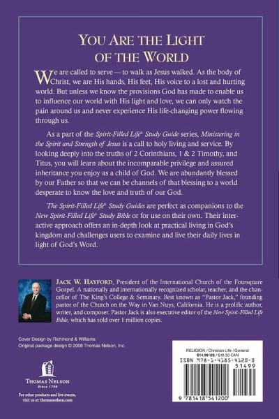 Ministering in the Strength and Spirit of Jesus is a call to holy living and service. By looking deeply into the truths of 2 Corinthians, 1 & 2 Timothy, and Titus, you will learn the inexpressible privilege and assured inheritance you have as a child of God. We are abundantly blessed by our Father so that we can be a channel of that blessing to a world desperate to know the love and truth of our God. Spirit-Filled Life Study Guides are the perfect companions to the New Spirit-Filled Life Bible or for use on their own. The guides' interactive approach offers an in-depth look at practical living in God's kingdom and challenges users to examine and live their daily lives in light of God's Word. Features Include: 12 Lessons, plus an introduction to Spiritual Warfare Interactive study guide Each lesson features a Kingdom Key, Word Wealth, Kingdom Extra, and a guide to Kingdom Life Strategies to overthrow works of darkness and live in victory