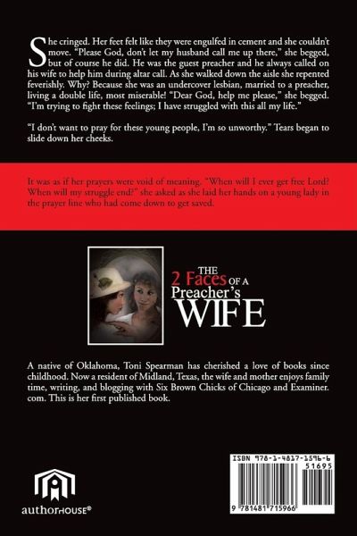 She cringed. Her feet felt like they were engulfed in cement and she couldn't move. "Please God, don't let my husband call me up there," she begged, but of course he did. He was the guest preacher and he always called on his wife to help him during altar call. As she walked down the aisle she repented feverishly. Why? Because she was an undercover lesbian, married to a preacher, living a double life, most miserable! "Dear God, help me please," she begged. "I'm trying to fight these feelings; I have struggled with this all my life." "I don't want to pray for these young people, I'm so unworthy." Tears began to slide down her cheeks. It was as if her prayers were void of meaning. "When will I ever get free Lord? When will my struggle end?" she asked as she laid her hands on a young lady in the prayer line who had come down to get saved.