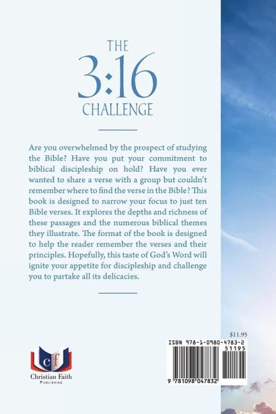 Are you overwhelmed by the prospect of studying the Bible? Have you put your commitment to biblical discipleship on hold? Have you ever wanted to share a verse with a group but couldn't remember where to find the verse in the Bible? This book is designed to narrow your focus to just ten Bible verses. It explores the depths and richness of these passages and the numerous biblical themes they illustrate. The format of the book is designed to help the reader remember the verses and their principles. Hopefully, this taste of God's Word will ignite your appetite for discipleship and challenge you to partake all its delicacies.