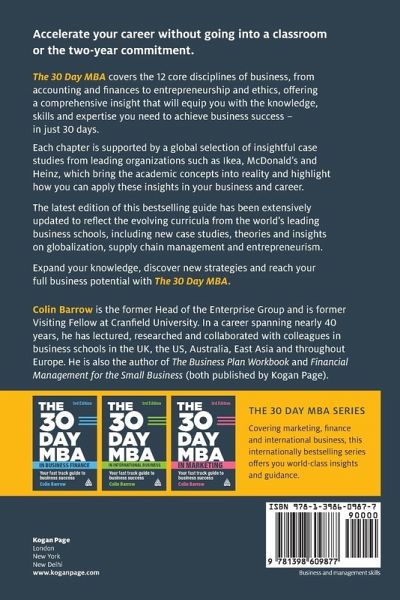 The 30 Day MBA takes you beyond the basics as it covers all 12 core disciplines of MBA courses, supported by insightful case studies from world-leading organizations such as Ikea, Cisco, Shell and Heinz. Colin Barrow draws upon his extensive academic and professional career to provide insights, guidance and clarity that equals the teaching from the world's top business schools.