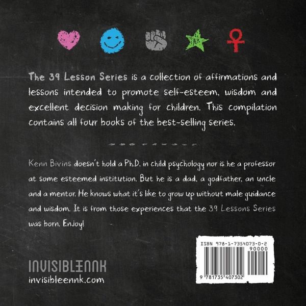 The 39 Lessons Series is a collection that includes all four of the best-selling 39 Lessons books. This series promotes self-esteem, wisdom, and excellent decision-making abilities in children of all ages, sizes, and backgrounds. This series is an invaluable resource for households, classrooms, and libraries. ---