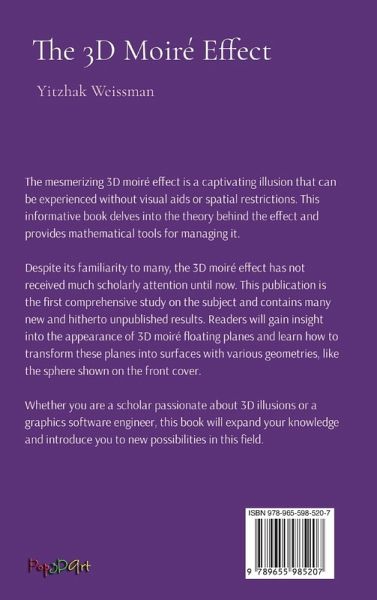 The 3D moiré effect creates an impressive 3D illusion that doesn't require any visual aids to observe. Although it has been known for a while, it has recently gained more attention due to advancements in printing technologies that allow for commercial and artistic exploration. Initially, it was used to produce images of floating planes. Gradually, it has been discovered that the surface can be sculpted into various forms, like a hemisphere, which has opened up new applications and increased interest in the effect. This book explains the theoretical foundations of the 3D moiré effect and how to…mehr