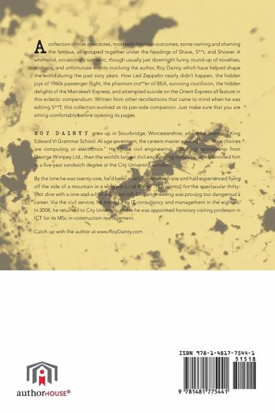A collection of true anecdotes, most with hilarious outcomes, some naming and shaming the famous, all grouped together under the headings of Shave, S**t, and Shower. A whimsical, occasionally sarcastic, though usually just downright funny, round-up of novelties, mishaps, and unfortunate events involving the author, Roy Dainty, which have helped shape the world during the past sixty years. How Led Zeppelin nearly didn't happen, the hidden joys of 1960s passenger flight, the phantom cra**er of BEA, surviving crucifixion, the hidden delights of the Marrakesh Express, and attempted suicide on the Orient Express all feature in this eclectic compendium. Written from other recollections that came to mind when he was editing S**T, this collection evolved as its pan-side companion. Just make sure that you are sitting comfortably before opening its pages.