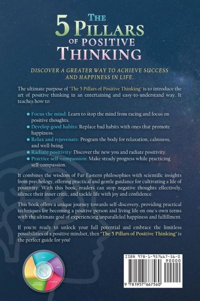 Discover the 5 Pillars of Positive Thinking for greater success and happiness in life. Pause for a moment. Be honest...Would you like to be calmer and more positive in many situations? Would you like to stop negative thoughts effectively? Make your fears disappear? Silence your inner critic? And would you rather instead...Tackle life with joy? Go through the day with confidence and energy? And be serene and happy in the process? All of this is actually possible. And this wonderful book will show you how: It introduces you to the art of positive thinking in an entertaining yet easy-to-understand way. You will get the most effective tools to stop your worrying and negative thoughts so you can navigate through life with ease and joy.In THE 5 PILLARS OF POSITIVE THINKING, discover how you can...stop your mind from racing and focus your thoughts. ditch your bad habits and replace them with ones that promote happiness. program your body for relaxation, calmness, and well-being. find the new you and radiate positivity. practice self-compassion while still making steady progress toward self-improvement. The book will take you on a unique journey. A journey towards self-discovery and to what makes YOU happy. Gain insight into what is stopping you from moving forward, like chains holding you back. Discover the techniques that can help you become a positive person and live life your way. This book combines the wisdom of Far Eastern philosophies with scientific insights from psychology. You will be provided with practical, enjoyable, and gentle guidance for cultivating a life of positivity.You deserve happiness - make sure you feel it with every fiber of your being!