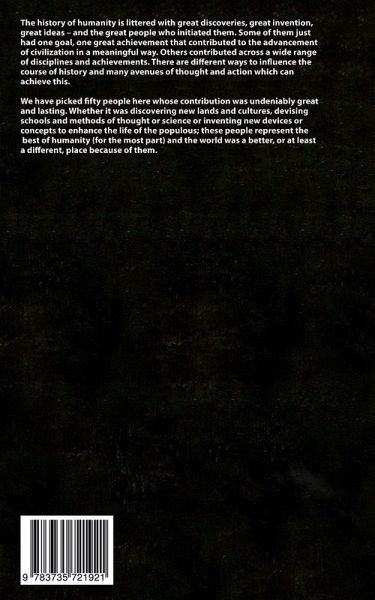The history of humanity is littered with great discoveries, great invention, great ideas - and the great people who initiated them. Some of them just had one goal, one great achievement that contributed to the advancement of civilisation in a meaningful way. Others contributed across a wide range of disciplines and achievements. There are different ways to influence the course of history and many avenues of thought and action which can achieve this.We have picked fifty people here whose contribution was undeniably great and lasting. Whether it was discovering new lands and cultures, devising schools and methods of thought or science or inventing new devices or concepts to enhance the life of the populous; these people represent the best of humanity (for the most part) and the world was a better, or at least a different, place because of them.