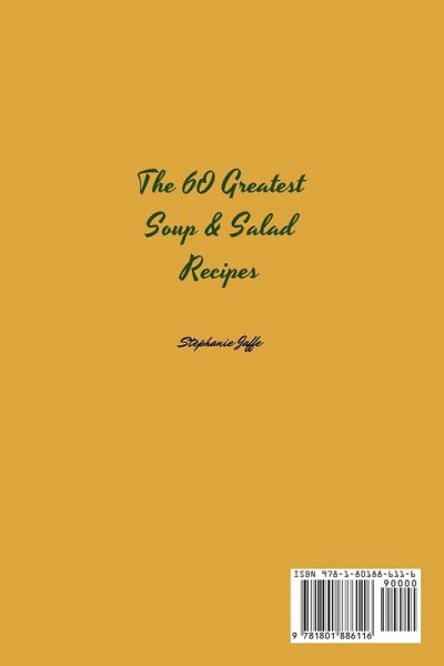 Inside her new cookbook you will find delicious salad, soup, main and side dish recipes, as well as snacks, dressings, dips and sauces that will help you lose weight, increase your energy, and prevent heart disease, stroke and diabetes. The 60 Greatest Soup and Salad Recipes: 60 Family-Friendly Soups and Salads for Better Health and Natural Weight Loss is an invaluable and delicious collection of healthy family recipes that will please everyone at the table and become all time favorites. If you're looking for delicious everyday dinner recipes to help satisfy your family and your budget, this cookbook is for you! This is the last cookbook you'll ever need! What are you waiting for? BUY THIS BOOK NOW!
