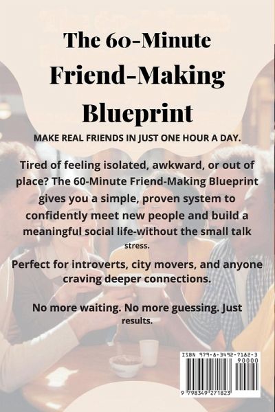 Feel like making friends as an adult is harder than it should be? You're not alone-and it's not your fault. Between busy schedules, new cities, and social anxiety, forming genuine friendships in adulthood can feel overwhelming. But what if you could change that in just 60 minutes a day? The 60-Minute Friend-Making Blueprint offers a simple, practical roadmap to help you confidently meet new people, spark meaningful conversations, and build a social circle you genuinely enjoy. Whether you're an introvert, new in town, or just ready to upgrade your social life, this guide shows you exactly how. Inside, you'll discover: A proven step-by-step system to build lasting friendships Strategies to overcome social anxiety and awkwardness Easy daily routines to meet like-minded people anywhere Conversation scripts, follow-up tactics, and real-world examples Guidance for shy beginners and seasoned socializers alike No fluff. No vague advice. Just actionable strategies that work. If you're tired of feeling isolated and ready to create a thriving, meaningful social life-this book is your shortcut. Grab your copy now and start building real connections in just one hour a day!