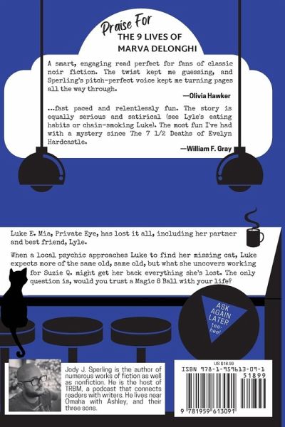 Luke E. Mia, Private Eye, has lost it all, including her partner and best friend, Lyle. When a local psychic approaches Luke to find her missing cat, Luke expects more of the same old, same old, but what she uncovers working for Suzie Q. might get her back everything she's lost. The only question is, would you trust a Magic 8 Ball with your life?