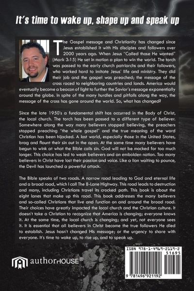 The Gospel message and Christianity has changed since Jesus established it with His disciples and followers over 2000 years ago. When Jesus "Called those He wanted" (Mark 3:15) He set in motion a plan to win the world. The torch was passed to the early church patriarchs and their followers, who worked hard to imitate Jesus' life and ministry. They did their job and the gospel was preached; the message of the cross raced to neighboring countries and lands. America would eventually become a beacon of light to further the Savior's message exponentially around the globe. In spite of the many hurdles and pitfalls along the way, the message of the cross has gone around the world. So, what has changed? Since the late 1950's a fundamental shift has occurred in the Body of Christ, the local church. The torch has been passed to a different type of believer. Somewhere along the way many believers stopped believing, the preachers stopped preaching "the whole gospel" and the true meaning of the word Christian has been hijacked. A lost world, especially those in the United States, brag and flaunt their sin out in the open. At the same time many believers have begun to wink at what the Bible calls sin. God will not be mocked for too much longer. This choice has led to weak believers and an embolden nation. Too many believers in Christ have lost their passion and voice. Like a lion waiting to pounce, the Devil has launched a powerful attack. The Bible speaks of two roads. A narrow road leading to God and eternal life and a broad road, which I call The 8-Lane Highway. This road leads to destruction and many, including Christians travel its crocked path. This book is about the eight lanes that make up this road. This book addresses the many believers and so-called Christians that live and function on and around the broad road. Their choices have greatly impacted the local church and the Christian culture. It doesn't take a Christian to recognize that America is changing; everyone knows it. At the same time, the local church is changing; and yet, not everyone sees it. It is essential that all believers in Christ become the true followers He died to establish. Jesus' hasn't changed His message; or the urgency to share with everyone. It's time to wake up, to rise up, and to speak up.