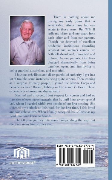 There is nothing about me during my early years that is remarkable. Almost any lad can relate to these years. But WW II split my sister and me apart from each other and from our parents. Though not deprived of excellent academic institutions (boarding schools) and summer camps, we both felt abandoned, unwanted, and unloved by our parents. Our lives changed dramatically from being carefree, open, and fun-loving to being guarded, suspicious, and resentful. I became rebellious and disrespectful of authority. I got in a lot of trouble, some instances being quite serious. Then, coming as a surprise to many people, I joined the Marine Corps and became a career Marine, fighting in Korea and VietNam. These experiences changed me dramatically. Married and divorced, I lost respect for women and had no intention of ever marrying again, that is, until I met a very special lady whom I married within two months of our first meeting. She softened my outlook on life, and, for the first time, I felt loved and was able to love. When I finally accepted Jesus Christ as my Lord, that love knew no bounds. The 80 year journey hits many bumps along the way, but there are many funny times also.