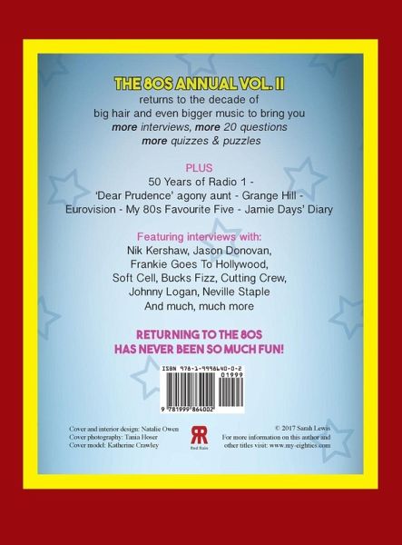 Following on from its hugely successful predecessor, The 80s Annual Vol. II offers more fun and photos, news and nostalgia, interviews and insights with some of the decade's favourite faces. Featuring interviews with Jason Donovan, Nik Kershaw, Soft Cell's David Ball, Cutting Crew's Nick van Eede, and Brian Nash from Frankie Goes To Hollywood, the annual includes crosswords, puzzles, and quizzes such as Lyrically Challenged, Quizzing Times and Pop Quiz. Your 80's problems are solved in the agony aunt pages Dear Prudence, excerpts from Jamie Days' Diaries reveal what it was like growing up in the era, a special length feature on Radio 1 takes a look at the station as it celebrates its 50th anniversary, and there are interviews with Bucks Fizz, Johnny Logan and Bardo's Sally-Ann Triplett in the Eurovision special. In full-colour and packed with photographs, The 80s Annual Vol. II is a great read for every adult 80's child. Returning to the 80s has never been so much fun!