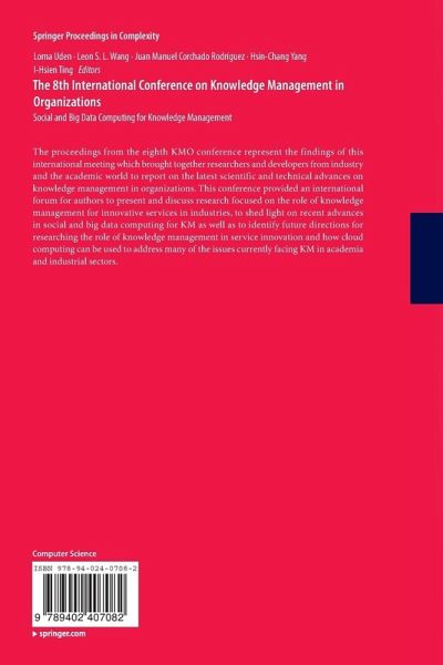 The proceedings from the eighth KMO conference represent the findings of this international meeting which brought together researchers and developers from industry and the academic world to report on the latest scientific and technical advances on knowledge management in organizations. This conference provided an international forum for authors to present and discuss research focused on the role of knowledge management for innovative services in industries, to shed light on recent advances in social and big data computing for KM as well as to identify future directions for researching the role of knowledge management in service innovation and how cloud computing can be used to address many of the issues currently facing KM in academia and industrial sectors.