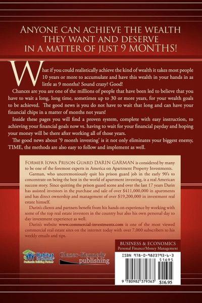 What if you could realistically achieve the kind of wealth it takes most people 10 years or more to accumulate and have this wealth in your hands in as little as 9 months? Sound crazy? Good! Chances are you are one of the millions of people that have been led to believe that you have to wait a long, long time, sometimes up to 30 or more years, for your wealth goals to be achieved. The good news is you do not have to wait that long and can have your financial chips in a matter of months not years! Inside these pages you will find a proven system, complete with easy instruction, to achieving your financial goals now vs. having to wait for your financial payday and hoping your money will be there after working all of those years.