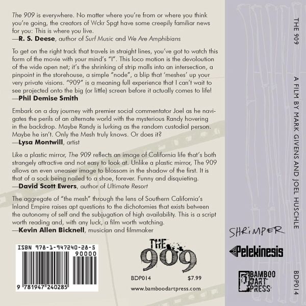 The 909 is a sci-fi script for a movie set in the near-future and taking the form of a reality documentary. The plot centers on a group of people who discuss the implications of "The Mesh", the technology that replaced the 'Net. Conspiracies, intrigue, and good old-fashioned camaraderie occupy these characters' thoughts as they try to retain a sense of individuality in an increasingly watchful society.