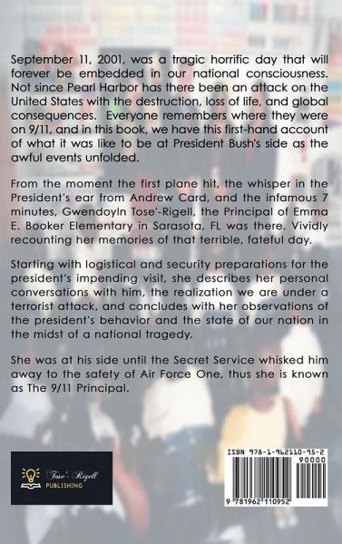 Everyone remembers where they were on 9/11 and in this book we have a first hand account of what it was like to be at President Bush's side as the awful events unfolded. Gwendolyn Tose'-Rigell was at his side until the Secret Service whisked him away to the safety of Air Force One, and thus is known as the 9/11 Principal