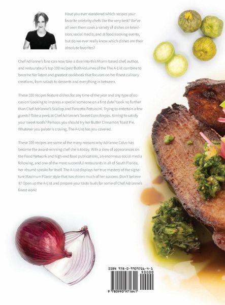 Have you ever wondered which recipes your favorite celebrity chefs like the very best? We've all seen them cook a variety of dishes on television, social media, and at food/cooking events, but do we ever really know which dishes are their absolute favorites? Chef Adrianne's fans can now take a dive into this Miami-based chef, author, and restaurateur's top 100 recipes! Both volumes of the The A-List combine to become her latest and greatest cookbook that focuses on her finest culinary creations, from salads to desserts and everything in between. These 100 recipes feature dishes for any time of the year and any type of occasion! Looking to impress a special someone on a first date? Look no further than Chef Adrianne's Scallop and Pancetta Fettuccini. Trying to entertain a few guests? Take a peek at Chef Adrianne's Sweet Corn Arepas. Aiming to satisfy your sweet tooth? Perhaps you should try her Butter Cinnamon Toast Pie. Whatever your palate is craving, The A-List has you covered. These 100 recipes are some of the many reasons why Adrianne Calvo has become the award-winning chef she is today. With a slew of appearances on the Food Network and high-end food publications, an enormous social media following, and one of the most successful restaurants in all of South Florida, her résumé speaks for itself. The A-List: Vol. I and II displays her true mastery of the signature Maximum Flavor style that has driven much of her success. Don't believe it? Open up The A-List and prepare your taste buds for some of Chef Adrianne's finest work!
