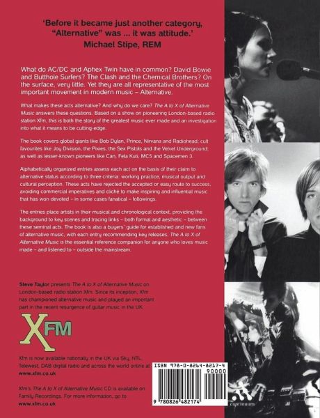 What do AC/DC and Aphex Twin have in common? David Bowie and Butthole Surfers? The Clash and the Chemical Brothers? On the surface, very little. Yet they are all representative of the most important movement in modern music - Alternative. What makes these acts alternative? And why do we care? The A to X of Alternative Music answers these questions. Based on a show on pioneering London-based radio station Xfm, this is both the story of the greatest music ever made and an investigation into what it means to be cutting-edge. The book covers global giants like Bob Dylan, Prince, Nirvana and Radiohead; cult favourites like Joy Division, the Pixies, the Sex Pistols and the Velvet Underground; as well as lesser-known pioneers like Can, Fela Kuti, MC5 and Spacemen 3. Alphabetically organized entries assess each act on the basis of their claim to alternative status according to three criteria: working practice, musical output and cultural perception. These acts have rejected the accepted or easy route to success, avoiding commercial imperatives and cliché to make inspiring and influential music that has won devoted - in some cases fanatical - followings. The entries place artists in their musical and chronological context, providing the background to key scenes and tracing links - both formal and aesthetic - between these seminal acts. The book is also a buyers' guide for established and new fans of alternative music, with each entry recommending key releases. The A to X of Alternative Music is the essential reference companion for anyone who loves music made - and listened to - outside the mainstream.