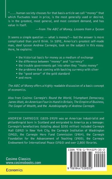 It seems a simple question - what is money?- but the answer is more complicated than you'd think. In 1891, America's greatest self-made man, steel tycoon Andrew Carnegie, took on the subject in this essay. Here, he explains: • the historical basis for money as a medium of exchange • the difference between "money" and "currency" • the trouble governments get into when they "make money" • the problems that coming with backing currency with silver • the "good sense" of the gold standard • and more. The ABC of Money: Lessons from a Tycoon offers a highly readable discussion of a basic concept of economics. Also from Cosimo: Carnegie's Round the World, Triumphant Democracy, James Watt, An American Four-in-Hand in Britain, The Empire of Business, The Gospel of Wealth, and the Autobiography of Andrew Carnegie.