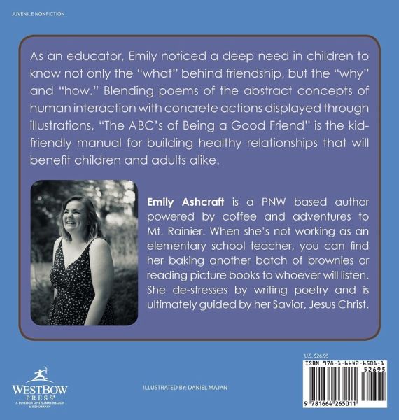 As an educator, Emily noticed a deep need in children to know not only the "what" behind friendship, but the "why" and "how." Blending poems of the abstract concepts of human interaction with concrete actions displayed through illustrations, "The ABC's of Being a Good Friend" is the kid-friendly manual for building healthy relationships that will benefit children and adults alike.