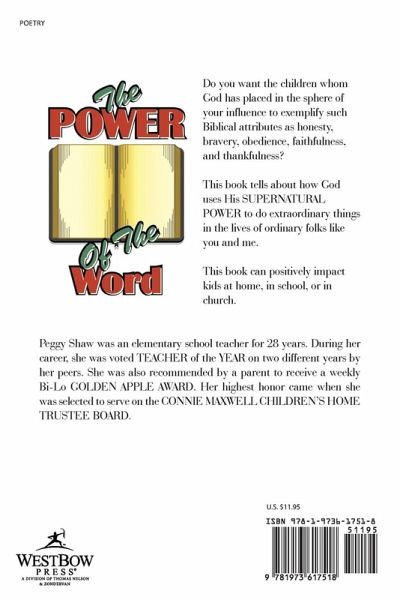 Do you want the children whom God has placed in the sphere of your influence to exemplify such Biblical attributes as honesty, bravery, obedience, faithfulness, and thankfulness? This book tells about how God uses His SUPERNATURAL POWER to do extraordinary things in the lives of ordinary folks like you and me. This book can positively impact kids at home, in school, or in church.