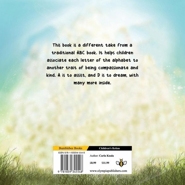This book is a different take from a traditional ABC book. It helps children associate each letter of the alphabet to another trait of being compassionate and kind. A is to assist, and D is to dream, with many more inside.