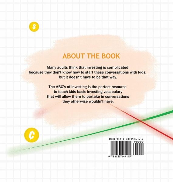 The ABC's of Investing is a fun journey into the world of investing. Teach your child about basic vocabulary of investing with picture examples that helps explain their use. Perfect for parents who want their children to learn early the things they learned late in life. This book will get children talking about terms they can definitely use later in life.
