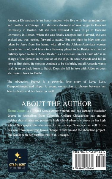 Amanda Richardson is an honor student who live with her grandmother and brother in Chicago. All she ever dreamed of was to go to Harvard University in Boston. All she ever dreamed of was to go to Harvard University in Boston. When she was finally accepted into Harvard, she was excited and was looking forward to attend. But one night in May, she was taken by force from her home, with all of the African-American women from infant to 60, and taken to a a far-away planet to be Brides to a race of military space soldiers. Aiden Baxter is a Lieutenant Junior Grade who is in charge of the females in his section of the ship. He sees Amanda and fall in love at first sight. He chooses Amanda to be his bride, but all Amanda wants to do is to go back home to Earth. Does she fall in love with Aiden or does she make it back to Earth? The Abduction Project is a powerful love story of Love, Loss, Disappointment and Hope. A young woman has to choose between her heart's desire and her home on earth.