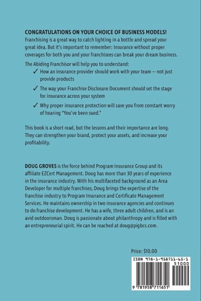 Congratulations on your choice of business models! Franchising is a great way to catch lighting in a bottle and spread your great idea. But it's important to remember: Insurance without proper coverages for both you and your franchisees can break your dream business. The Abiding Franchisor will help you to understand: ¿ How an insurance provider should work with your team-not just provide products ¿ The way your Franchise Disclosure Document should set the stage for insurance across your system ¿ Why proper insurance protection will save you from constant worry of hearing "You've been sued." This book is a short read, but the lessons and their importance are long. They can strengthen your brand, protect your assets, and increase your profitability.