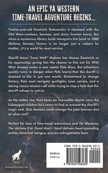 AN EPIC YA WESTERN TIME-TRAVEL ADVENTURE BEGINS... Twelve-year-old Dominick Dalesandro is obsessed with the Old West-outlaws, lawmen, and dusty frontier towns. But when a mysterious library book transports him back to 1888 Abilene, Kansas, history is no longer just a subject he studies...it's a world he must survive. Sheriff Amos "Lone Wolf" Malone has chosen Dominick as his apprentice, giving him the chance to live out his Wild West dreams under a new name: Pete Moss. But adventure quickly turns to danger when Pete learns that the sheriff is doomed to die in just one month. Determined to change history, Pete must navigate gunfights, town secrets, and a daring rescue mission-all while trying to stop a fate that the sheriff refuses to outrun. As the stakes rise, Pete faces an impossible choice: save the kidnapped children he's sworn to find or prevent the sheriff's tragic end. One decision could change the past forever-but at what cost? Perfect for fans of time-travel adventures and YA Westerns, The Abilene Kid: Dead Man's Hand delivers heart-pounding action, historical intrigue, and an unforgettable hero.