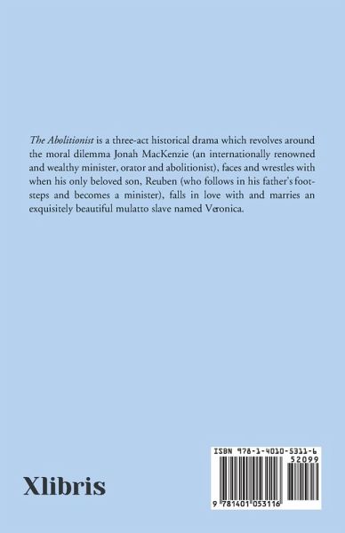 "THE ABOLITIONIST" is a three-act play occuring between the years, 1851 - 1861. The protagonist is Jonah MacKenzie, a wealthy minister renowned throughout the nation for his abolitionist activities. His aristocratic wife, Elizabeth, is a partial invalid from a stroke; and their only child, Reuben, adoring his father, has gone on to become a minister as well. In Act I we learn that Jonah is torn between an equally intense love and hatred for his son whom he and his wife have banished. Mary Beaton, a young well-to-do neighbor, once engaged to Reuben but secretly in love with his father Jonah, comes to visit and implores Jonah to find his son and reconcile. Elizabeth, overhearing Mary's entreaties, and wary of the young lady's intentions toward her husband, wheels herself in and commands Mary to leave, never to return. Act II occurs in the past (1851) and focuses upon the abolitionist activities of father and son. We find them in the Free state of Ohio where Jonah delivers an impassioned sermon against slavery in a little church near the Kentucky (a slave state) border, dodging stones. Jonah then visits his friends, Moses and Kathleen Pendleton, leaders of the Underground Railroad. Meantime, Reuben is in Kentucky, present at a slave auction. He is smitten with love for an exquisitely beautiful mulatto named Veronica. She is purchased by a murderous slave-holder, Roland Jeffries, from whose Kentucky plantation early in the morning Reuben rescues her. He brings her to the Pendletons. Determined to retrieve the slave-girl, Jeffries barges in, shooting and wounding Jonah who is barring the way. Reuben enters in time to save Veronica and Jonah. Reuben escorts Veronica on the Underground Railroad to Canada where he proposes marriage to her. At first dissenting, pointing out the probable social consequences, Veronica yields. Though proud of his son's rescue of Veonica, upon learning that his son intends to marry a negro Jonah becomes enraged and forbids the marriage, threatening disinheritance and banishment. The act ends with a soliloquy by Reuben expressing horror at his fate. Act III returns to the present. Elizabeth thinks she has convinced Jonah to accept a professorship he's been offered at Oxford University in England but he is secretly determined to find Reuben. After initial hesitation, but then swayed by Jonah's charm, Reuben and Veronica consent to leave Toronto and live with Jonah. When Jonah returns home to Boston he finds that Elizabeth has suffered a new major stroke which has left her in a vegetative state. Mary, once again in vain, pursues Jonah, who, in turn - flattered by daughter-in-law Veronica's coquetry and succumbing to his own weakness of mind, impulsively attempts to seduce her. Veronica's initial attraction to him quickly turns to repugnance. Once again, Jonah banishes Reuben and his daughter-in-law from his household. The play ends on a catastrophic note just before we hear the booming sound of cannon announcing the advent of The Civil War. Barry Bennett Blander