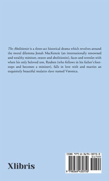 "THE ABOLITIONIST" is a three-act play occuring between the years, 1851 - 1861. The protagonist is Jonah MacKenzie, a wealthy minister renowned throughout the nation for his abolitionist activities. His aristocratic wife, Elizabeth, is a partial invalid from a stroke; and their only child, Reuben, adoring his father, has gone on to become a minister as well. In Act I we learn that Jonah is torn between an equally intense love and hatred for his son whom he and his wife have banished. Mary Beaton, a young well-to-do neighbor, once engaged to Reuben but secretly in love with his father Jonah,…mehr
