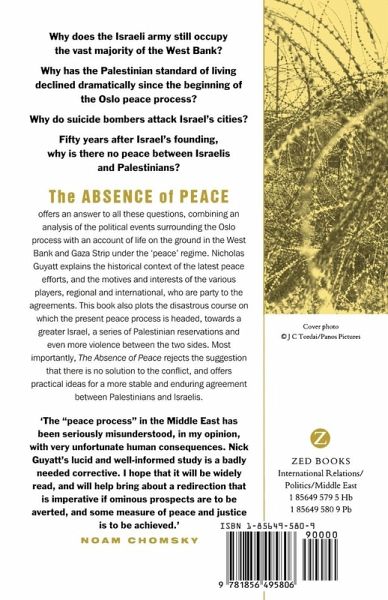Why does the Israeli army still occupy the vast majority of the West Bank? Why has the Palestinian standard of living declined dramatically since the beginning of the Oslo peace process? Why do suicide bombers attack Israel's cities? Fifty years after Israel's founding, why is there no peace between Israelis and Palestinians? The Absence of Peace offers an answer to all these questions, combining an analysis of the political events surrounding the Oslo process with an account of life on the ground in the West Bank and Gaza Strip under the 'peace' regime. Nicholas Guyatt explains the historical context of the latest peace efforts and the motives and interests of the various players, regional and international, who are party to the agreements. This book also plots the disastrous course on which the present peace process is headed, towards a greater Israel, a series of Palestinian reservations and even more violence between the two sides. Most importantly, The Absence of Peace rejects the suggestions that there is no solution to the conflict, and offers practical ideas for a more stable and enduring agreement between Palestinians and Israelis.