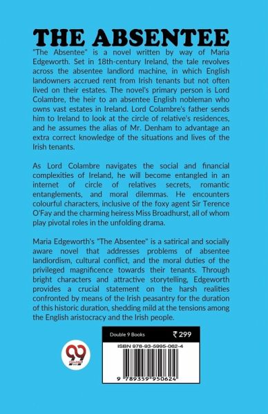 "The Absentee" is a novel written by way of Maria Edgeworth. Set in 18th-century Ireland, the tale revolves across the absentee landlord machine, in which English landowners accrued rent from Irish tenants but not often lived on their estates. The novel's primary person is Lord Colambre, the heir to an absentee English nobleman who owns vast estates in Ireland. Lord Colambre's father sends him to Ireland to look at the circle of relative's residences, and he assumes the alias of Mr. Denham to advantage an extra correct knowledge of the situations and lives of the Irish tenants. As Lord…mehr
