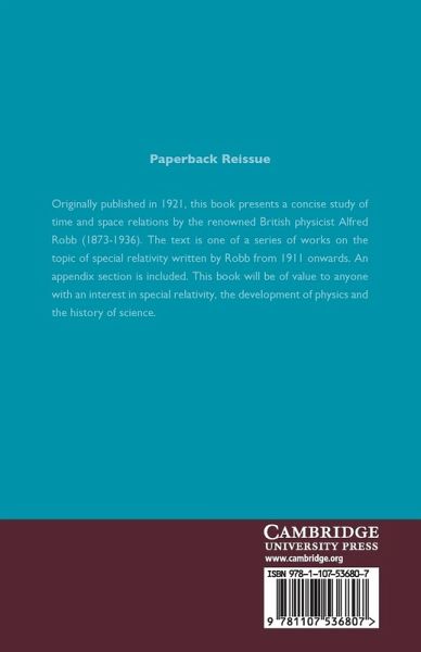 Originally published in 1921, this book presents a concise study of time and space relations by the renowned British physicist Alfred Robb (1873-1936). The text is one of a series of works on the topic of special relativity written by Robb from 1911 onwards. An appendix section is included. This book will be of value to anyone with an interest in special relativity, the development of physics and the history of science.