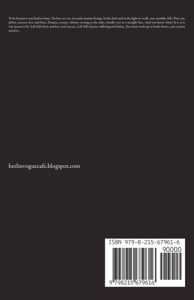 To be human is too hard at times. Yet here we are, on earth, human beings. In the dark and in the light we walk, run, stumble, fall...Pain, joy, defeat, success, love and hate...Trauma, ecstasy...Always veering to the sides...hardly ever in a straight line...And you know what? It is as it was meant to be. Life full of joy and love and success...Life full of pain, suffering and defeat...You must wash up on both shores...you cannot avoid it...