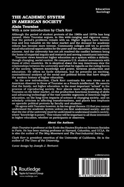 Although the period of student protests of the 1960s and 1970s has long passed, Alain Touraine argues, in this wide-ranging and vigorous essay, that the period's problems remain with us. Higher degrees have become less and less valuable on the labor market and the demand for academic reform has become more intense. Community colleges still try to provide equal educational opportunities for the poor and the minorities, without much success. And the university has not yet resolved the conflict between being the home of impartial inquiry and research and serving constituent interests. Touraine views American higher education as a system within a definite, though changing, social context. He compares U.S. student movements with those of other countries. He is skeptical about the way Americans view the relationships between the university and what he regards as the ruling forces of the society, between knowledge and power, between production and education. He offers no facile solutions, but he presents an exciting, nontraditional analysis of the social and political forces that have shaped the modern history of higher education. In the new introduction, Clark Kerr contrasts his own views as an American observer to those of Touraine as a French intellectual. He asserts that the family, not higher education, is the most important "school" in the process of reproducing society. Kerr places more emphasis than does Touraine on the labor market, on the production functions (training of skills and advancing technology) of the vast nonelite segments of American higher education, on the long-term impacts of science in changing society, and on scholarly criticism in affecting transformations, and places less emphasis on sporadic political protests by faculty and students. He agrees with Touraine however, in his two great themes: (1) that you cannot understand the academic system unless you first understand society; and (2) that the rise of the university must be understood to understand modern society, where "knowledge is power." This volume will be important to all those interested in higher education, whether as participants or observers.