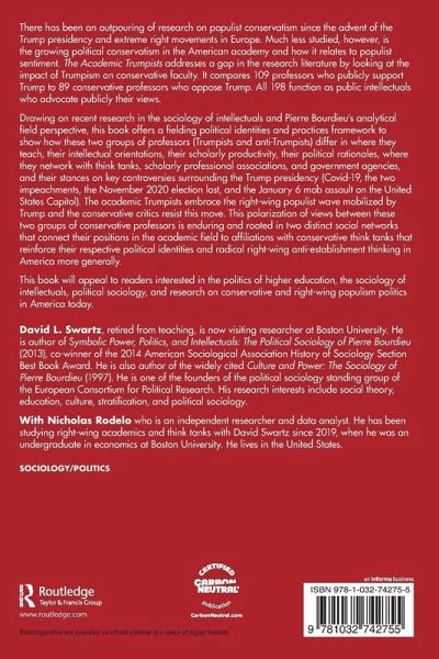 The Academic Trumpists addresses a gap in the research literature by looking at the impact of Trumpism on conservative faculty and will appeal to readers interested in the politics of higher education, the sociology of intellectuals, political sociology, and research on conservative and right-wing populism politics in America today.