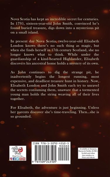 Nova Scotia has kept an incredible secret for centuries. In 1795, sixteen-year-old John Smith, convinced he's found buried treasure, digs down into a mysterious pit on a small island. In present day Nova Scotia, twelve-year-old Elisabeth London knows there's no such thing as magic, but when she finds herself in 17th century Scotland, she no longer knows what to think. While under the guardianship of a kind-hearted Highlander, Elisabeth discovers his ancestral home holds a mystery of its own. As John continues to dig the strange pit, he inadvertently begins the longest running, most expensive, and deadliest treasure hunt in history. Now, Elisabeth London and John Smith each try to unravel the secrets consuming them, unaware that a tormented young man holds the string weaving all of their lives together. For Elisabeth, the adventure is just beginning. Unless her parents discover she's time-traveling. Then...she is so grounded.