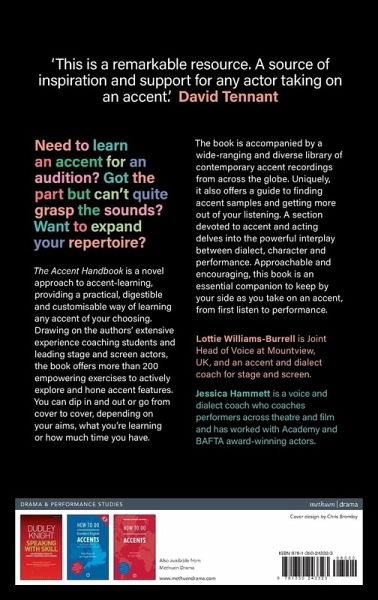 Need to learn an accent for an audition? Got the part but can't quite grasp the sounds? Want to expand your repertoire? The Accent Handbook is a novel approach to accent-learning, providing a practical, digestible and customisable way of learning any accent of your choosing. Drawing on the authors' extensive experience coaching students and leading stage and screen actors, the book offers more than 200 empowering exercises to actively explore and hone accent features. You can dip in and out or go from cover to cover, depending on your aims, what you're learning or how much time you have. The book is accompanied by a wide-ranging and diverse library of contemporary accent recordings from across the globe. Uniquely, it also offers a guide to finding accent samples and getting more out of your listening. A section devoted to accent and acting delves into the powerful interplay between dialect, character and performance. Approachable and encouraging, this book is an essential companion to keep by your side as you take on an accent, from first listen to performance.