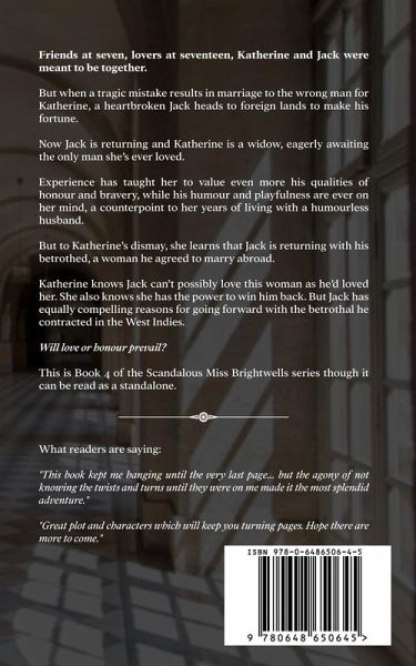 Friends at seven, lovers at seventeen, Katherine and Jack were meant to be together. But when a tragic mistake results in marriage to the wrong man for Katherine, a heartbroken Jack heads to foreign lands to make his fortune. Now Jack is returning and Katherine is a widow, eagerly awaiting the only man she's ever loved. Experience has taught her to value even more his qualities of honour and bravery, while his humour and playfulness are ever on her mind, a counterpoint to her years of living with a humourless husband. But to Katherine's dismay, she learns that Jack is returning with his…mehr