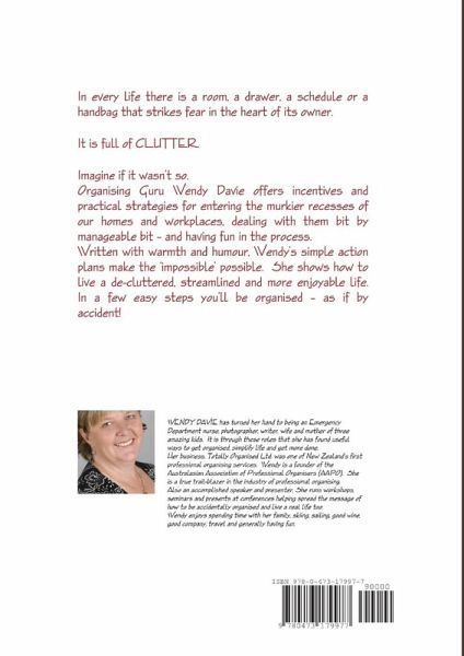 In every life there is a room, a drawer, a schedule or a handbag that strikes fear in the heart of its owner. It is full of CLUTTER. Imagine if it wasn't so. Organising Guru Wendy Davie offers incentives and practical strategies for entering the murkier recesses of our homes and workplaces, dealing with them bit by manageable bit - and having fun in the process. Written with warmth and humour, Wendy's simple action plans make the 'impossible' possible. She shows how to live a de-cluttered, streamlined and more enjoyable life. In a few easy steps you'll be organised - as if by accident!