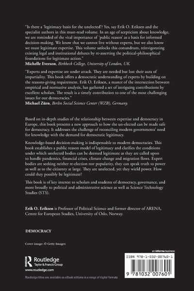 Based on in-depth studies of the relationship between expertise and democracy in Europe, this book presents a new approach to how the un-elected can be made safe for democracy. It addresses the challenge of reconciling modern governments' need for knowledge with the demand for democratic legitimacy. Knowledge-based decision-making is indispensable to modern democracies. This book establishes a public reason model of legitimacy and clarifies the conditions under which unelected bodies can be deemed legitimate as they are called upon to handle pandemics, financial crises, climate change and migration flows. Expert bodies are seeking neither re-election nor popularity, they can speak truth to power as well as to the citizenry at large. They are unelected, yet they wield power. How could they possibly be legitimate? This book is of key interest to scholars and students of democracy, governance, and more broadly to political and administrative science as well as the Science Technology Studies (STS).